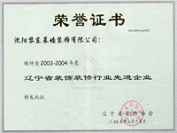 2003-2004年度遼寧省裝飾裝修行業(yè)先進企業(yè) |