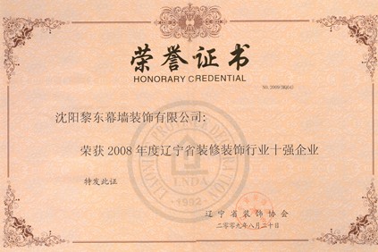 | 2009年獲無錫保利廣場大酒店全國建筑工程裝飾獎 | 2009年趙佳獲遼寧省裝飾裝修行業(yè)優(yōu)秀企業(yè)家 | 2009年度遼寧省裝修裝飾行業(yè)十強企業(yè) |