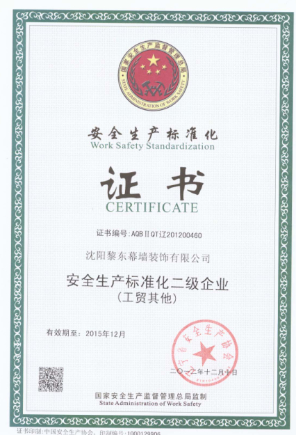 | 2012年被評為安全生產(chǎn)標準化二級企業(yè) | 2013年獲得常務(wù)理事獎 | 2014年獲中國建筑幕墻行業(yè)三十年突出貢獻企業(yè) |